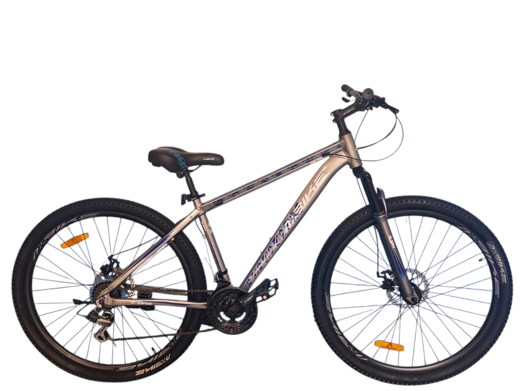 Cuadro de aluminio – cableado interno – pedales plataforma de aluminio – mazas a rulemanes – caja pedalera blindada – 21 velocidades – freno a disco mecanico – llantas doble pared – horquilla con suspension – pata de cambio Shimano Tourney