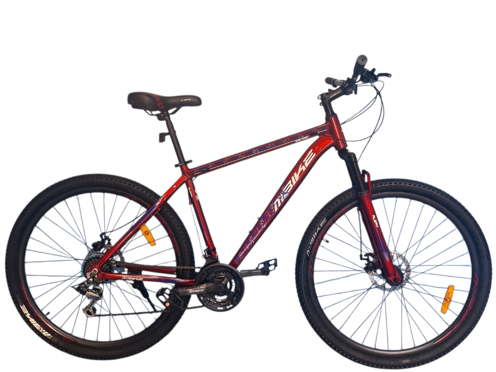 Cuadro de aluminio – cableado interno – pedales plataforma de aluminio – mazas a rulemanes – caja pedalera blindada – 21 velocidades – freno a disco mecanico – llantas doble pared – horquilla con suspension – pata de cambio Shimano Tourney