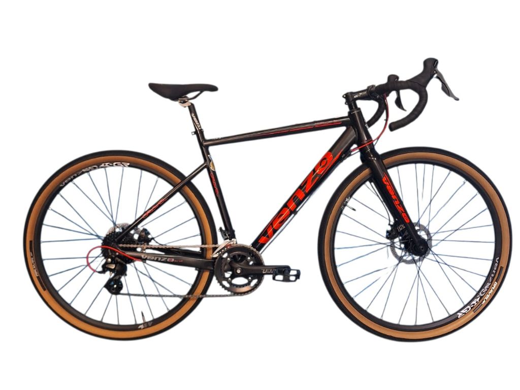 Venzo Gravel de aluminio con cambios shimano 2×8, eje boost y freno a discos mecanicos